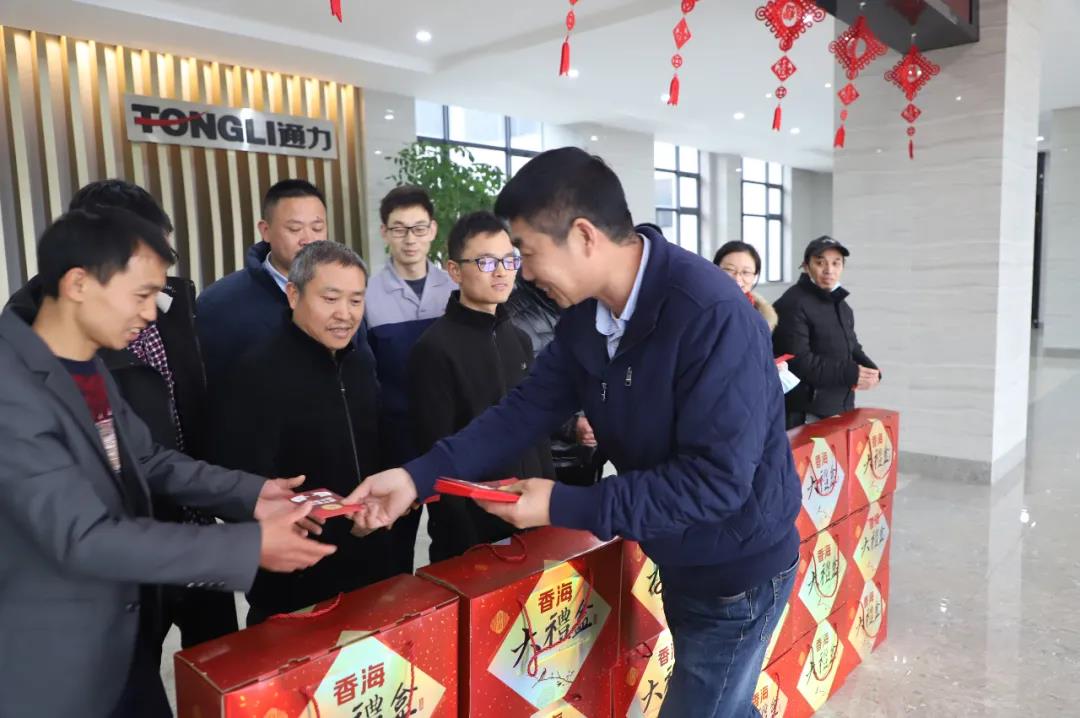 2月8日(臘月二十七),為響應國家鼓勵企業職工就地過年的號召,為給予今年留在瑞安就地過年的通力員工新年祝福和溫暖,通力黨支部、工會連同行政部特為通力留瑞就地過年的職工代表們送上新春大禮包,祝愿員工們新春愉快。公司黨支部書記項建設代表公司向員工們一一送上禮包。