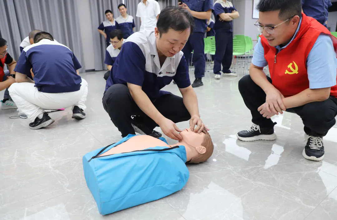 在緊急情況下,正確的急救措施能夠最大限度地減少傷害和損失。不慎中暑后要及時散熱,保持水分攝入,必要時向同事求助,醫(yī)護老師還重點講解了工傷事故的急救措施,包括傷口處理、骨折固定等,讓每一位同事都能成為自己和同事的守護者。醫(yī)護老師利用人體模型進行了現(xiàn)場急救技能的培訓和示范,示范過程中有效的將理論知識生動的融入到急救技能過程當中。