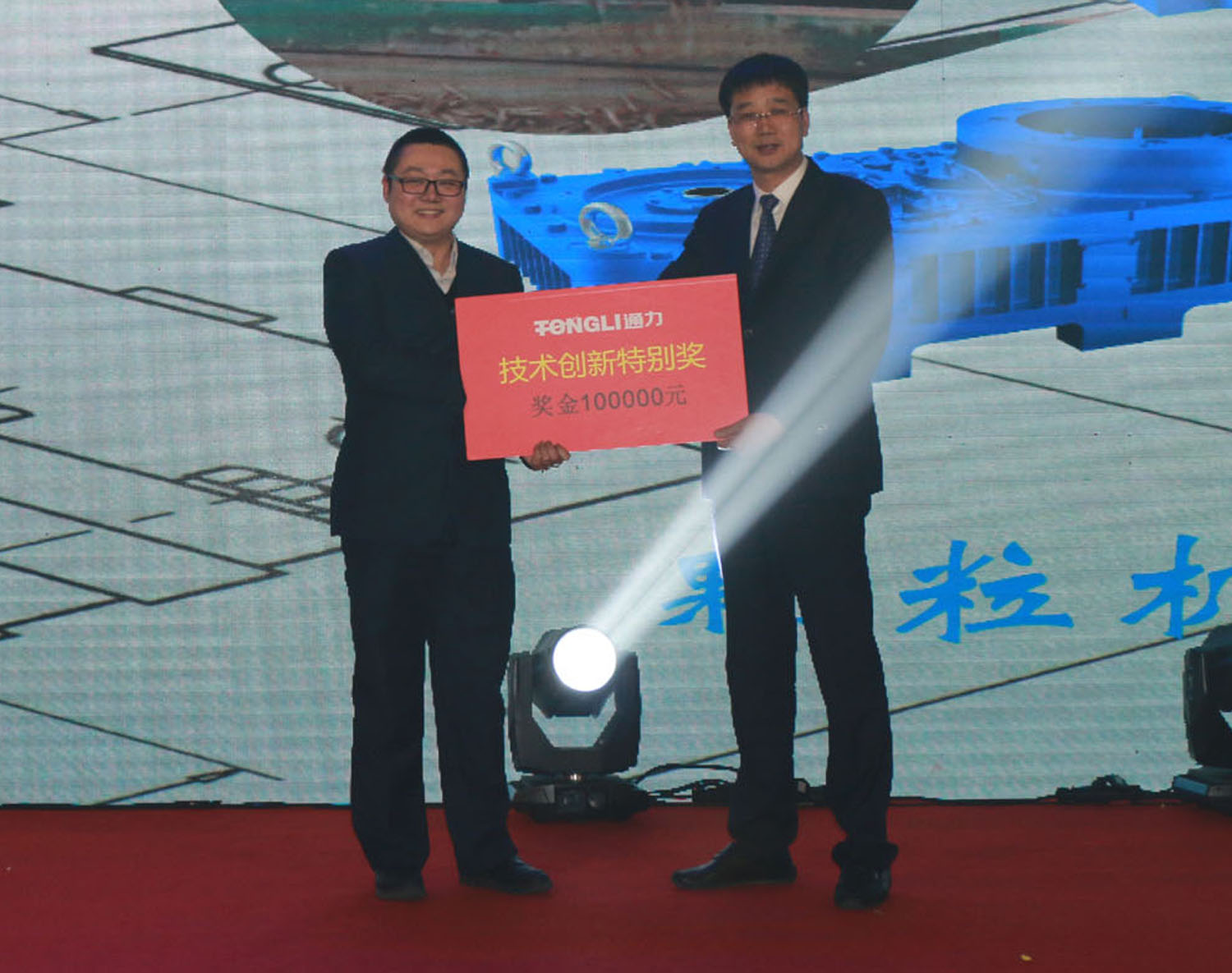 最后,項董為通力技術(shù)團隊頒發(fā)技術(shù)創(chuàng)新特別獎,為表彰過去的一年,他們研發(fā)的新產(chǎn)品成功打開了通力在國外棕櫚油市場和國內(nèi)顆粒機的市場。技術(shù)部代表何蕓說:“很榮幸能得到這份榮譽,我們技術(shù)團隊也會再接再厲,在科技創(chuàng)新道路上不斷探索前行!”